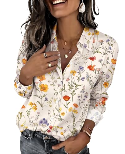 Zeagoo Dressy Floral Long Sleeve Button-Down Blouse